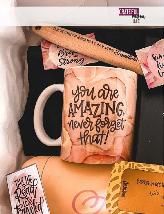Welcome to our gifting haven, where creativity knows no bounds. At CratefulMomUAE, we take pride in curating bespoke Cratefuls right in our own workshop, ensuring each gift radiates uniqueness and thoughtfulness. Whether you're drawn to our handcrafted Cratefuls or prefer the freedom to shop individual items, we offer a diverse selection to cater to your every gifting need. Explore our collection and make every occasion truly memorable with the perfect blend of customization and convenience.