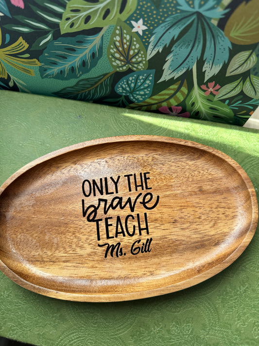 Name with swoosh - Personalized engraved Acacia trinket tray